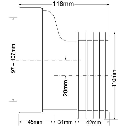 Фановая труба со смещением McAlpine MRWC4 предназначена для подключения унитазов при неточном совпадении осей выпуска и входа в канализацию.