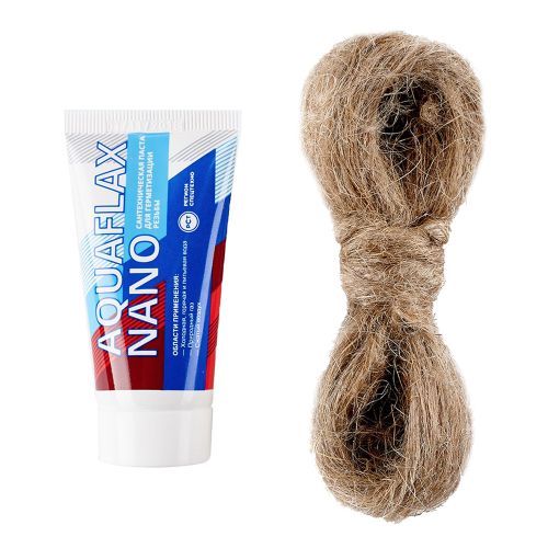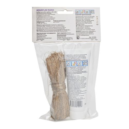 Набор уплотнительная паста AQUAFLAX NANO с наночастицами и лен включает в себя необходимое оснащения для качественной герметизации соединений в системах водо- и газоснабжения.